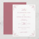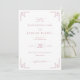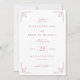 Cette élégante invitation de mariage présente une mise en page symétrique avec un fond rose blush doux, créant une atmosphère chaleureuse et accueillante. Le design comprend des motifs géométriques en coin symétriques dans une nuance de rose légèrement plus foncée, ajoutant une touche abstraite et sophistiquée. Le texte centré est disposé de manière hiérarchique à l'aide de polices de caractères délicates et serif, mettant en valeur les noms et les détails de l'événement tout en conservant un attrait intemporel. Le style général mélange des éléments classiques et contemporains, parfait pour transmettre la formalité et la grâce, ce qui en fait l'idéal pour célébrer un moment important de la vie avec chaleur et raffinement.