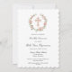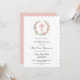 Une élégante décoration de la Première Sainte Communion présente une croix rose dans une couronne fleurie en haut de l'invitation. Le texte est une combinaison de polices traditionnelles italiques et droites.
