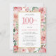 Invitation Rose rose et Hydrangea Floral 100e anniversaire