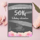 Rose rose florale rayures 50e anniversaire Invitation. Célébrez le 50e anniversaire d'une femme spéciale avec une invitation vibrante! Ce design présente des roses roses roses et des rayures d'aquarelle gris clair sur un arrière - plan gris, créant un look vraiment étonnant. Invitation votre invité spécial à vous rejoindre pour une soirée inoubliable de célébration et d'amitié. Faisons de cet anniversaire un souvenir ! Le texte est entièrement personnalisable - personnalisez-le avec votre nom, âge, date, emplacement et RSVP.