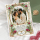 Capturez l'essence d'un romantisme intemporel avec cette superbe carte de save-the-date à motif floral rouge, conçue pour mettre en valeur votre photo de fiançailles avec des détails dorés vintage, des roses rouges burgondes et un feuillage délicat d'eucalyptus. Les détails complexes de style vintage et les accents dorés ajoutent une touche de luxe et de sophistication, ce qui en fait le choix idéal pour tout mariage classique, vintage et floral dans un jardin. Conçue pour impressionner, cette élégante carte de save-the-date donne le ton pour votre grand jour tout en servant de beau souvenir pour vos proches. Il suffit de télécharger votre photo préférée, de personnaliser le texte et de choisir parmi des options de papier premium pour une finition de haute qualité qui reflète votre histoire d'amour unique.
