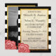 Invitation Rose rouge moderne faux papier d'or rayé mariage