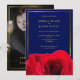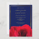 Invitation Rose rouge sur bleu profond | Mariage photo Gold F
