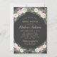 Notre invitation à la douche nuptiale à fleurs de boho vintage dans un format vertical présente un arrangement floral moody de roses romantiques, des fleurs de pivoine et d'anémones, de la verdure et des accents bohème rustique qui encadre le libellé dans des tons riches de rose, rose mauve, cassis, blanc crémeux, vert mousse, gris et or sur une couleur gris foncé / noir arrière - plan .. Une palette de couleurs dramatique et rêveuse pour votre mariage d'automne ou d'hiver. Personnalisez le beau texte personnalisé pour votre événement rustique de douche nuptiale élégant.
