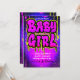 Invitation Rose Vert Violet Peinture qui Goutte Fête de Bébé