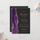 Le bord gauche de cette élégante faire-part de mariage moderne est orné d'une bordure d'aquarelle violette ornée d'une parties scintillant d'or rose. Le texte personnalisable combine écriture rose, cuivre et polices italiques sur un arrière - plan noir ardoise. L'envers offre de l'espace pour les détails mariages sur un arrière - plan en ardoise solide, ainsi qu'un code QR que les clients peuvent scanner pour visiter votre site Web et RSVP, ce qui permet d'économiser le coût d'impression et d'envoi de cartes RSVP séparées.