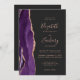 Invitation Rose violet Gold Agate Dark QR Code Mariage