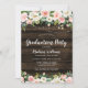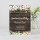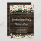 Cette invitation à la fête de remise des diplômes aux fleurs roses est parfaite pour une fête à thème country. Ce design unique présente des fleurs d'aquarelle rose et crème, des lampes à cordes et un arrière - plan en bois de grange foncé. Personnalisez facilement cet invitation avec les champs de modèle en ligne.