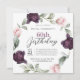 Une invitation de fête pour un 60e anniversaire, luxueuse et douce, où le point central est une couronne de roses délicates aquarellées de teintes rose tendre et de riches pourpres de prune, entrelacées de brins de verdure vaporeuse. Ces éléments floraux encadrent votre texte avec une touche romantique et élégante. Utilisant un mélange de polices sérif élégantes et de caractères cursifs modernes, la mise en page du texte est attrayante et raffinée. Cette conception d'invitation dégage un charme raffiné et intemporel, parfait pour une célébration d'étape mémorable.