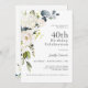 Invitation Roses blanches et Hydrangeas Elégant 40e anniversa