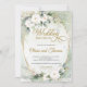 Invitation Roses blanches eucalyptus vert or oval mariage