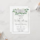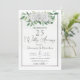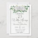 Invitation élégante pour le 25e anniversaire de mariage avec une illustration aquarelle de feuilles d'eucalyptus à graines, roses blanches et petites fleurs de baby breath.