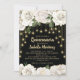 Quinceañera 15ème anniversaire invitation pour les filles avec de belles et élégantes roses/fleurs blanches avec parties scintillant or et lumières scintillantes sur un arrière - plan noir. Personnalisez en ajoutant votre photo au dos de la carte.