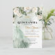 Elégante Roses blanches Roses vertes et or Quinceañera invitation Romantique populaire maintenant design bohème, inspiré par les roses blanches éternelles - les pivoines - le symbole de l'amour, jardin fleuri luxurie de pivoines blanches molles, tissé dans la verdure d'eucalyptus frais et tissé autour du cadre oval or fax. Vous voulez être une nymphe de forêt au lieu d'une princesse brillante - eh bien ... mettre des sandales, porter de la dentelle, et tisser une couronne de fleurs sauvages dans vos cheveux, et nous compléterons votre look boho avec ce grand design pour toute papeterie pour votre événement. Sophistiqué look boho, dans une combinaison si populaire de couleur de blanc et de verdure et d'or - ici encore captive tous les invités - et oui, votre célébration sera sûrement rappelée pour longtemps. Un bouquet luxuriant de roses de pivoines tissés avec de la verdure d'eucalyptus enveloppe doucement les noms au centre des invitations, comme dans une délicate étreinte éternelle. Dans ce beau design branché, nous avons préparé tous les éléments nécessaires à votre fête de boho - tels que des jeux, des affiches de bienvenue, des panneaux de table et bien plus encore, afin que vous puissiez obtenir un ensemble complet de ce design boho exceptionnel avec une aquarelle de couleur anglaise roses blanches, feuillage vert pastel mélangé eucalyptus, feuilles sauge tissé dans un cadre en faux or. Contactez-moi pour les articles correspondants ou pour la personnalisation, Roses Blush ©