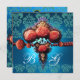 INVITATION ROSES CORAIL ROUGE, DAMAS MONOGRAMME BLEU AQUA NOI
