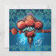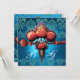 INVITATION ROSES CORAIL ROUGE, MONOGRAMME DAMAS AQUA BLEU NOI