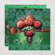 INVITATION ROSES CORAIL ROUGE, MONOGRAMME DAMAS BLEU VERT NOI