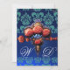 INVITATION ROSES CORAIL ROUGE, MONOGRAMME DAMASSE NOIR BLEU A