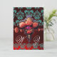 INVITATION ROSES CORAIL ROUGE OR, MONOGRAMME DAMASSÉ BLEU NOI