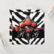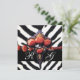 INVITATION ROSES DE CORAIL ROUGE IMPRIMÉES, PEAU DE ZÈBRE NOI