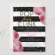 Gras rayures noir et blanc avec pointes de parties scintillant dorée et roses roses roses modernes bachelorette cartes d'invitation fête.