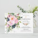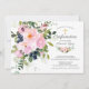 Ajoutez une touche d'élégance à votre événement avec nos magnifiques fleurs de roses et pivoines roses et aquarelle bleu avec rose & eucalyptus feuilles Confirmation invitations.