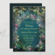 Faire-part de mariage forestier enchanté | Fairy Tale Woodland Thème | Emerald Green & Gold Ce faire-part de mariage de forêt enchanté est doté d'une végétation luxuriante et sauvage, d'un feuillage suspendu et de branches d'arbres drapées de lumières féeriques dans un effet d'or faux, créant une atmosphère romantique et magique. Un cadre de roses fuchsia rose, violet et crème ajoute une touche florale luxueuse, tandis que l'arrière - plan émeraude vert émeraude améliore l'esthétique mystique et féerique. Parfait pour un mariage de printemps, d'été, d'automne ou d'hiver, cette invitation élégante et moderne est idéale pour les épouses qui adorent un cadre forestier féerique, les mariages de bois, les thèmes de jardin féerique, les modèles roses romantiques, et une palette de couleurs vert émeraude et or. Que vous planifiez un mariage de conte de fées mystique, une cérémonie d'inspiration botanique ou une célébration de bois fantaisiste, cette luxueuse invitation florale saisit la magie d'un mariage de forêt rêveur