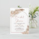 Fausse calligraphie moderne en or rose pour invitation de douche de mariée dans un style bohème avec deux adorables arrangements floraux avec de l'herbe des pampas dans des tons naturels et terracotta et une arche en terracotta.