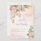 Invitation élégante de fête d'anniversaire avec roses pastel crème rose et lanternes marocaines.