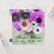 Élégantes roses blanches et pourpres et anémones roses sur fond vert sarcelle avec motifs damassés. Ce design classe et unique est parfait comme annonce de mariage, cartes de placement, cartes de sauvegarde de date, cartes de remerciement, lancements de mariage, anniversaires de 16 ans, fêtes, lancements de fiançailles, ou presque tout événement que vous souhaitez !