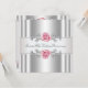 Invitation de fête d'anniversaire de mariage argent élégante avec des roses roses pour 25 ans de mariage. Cette belle invitation de fête avec des roses argent et rose est facilement personnalisable pour votre événement en ajoutant vos détails d'événement, style de police, taille et couleur de police, et libellé.