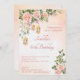 Invitation élégante de fête d'anniversaire avec roses roses pastel crème et lanternes marocaines.