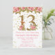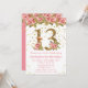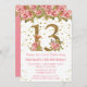 Pink Roses Floral 13e anniversaire invitation pour une fille de 13 ans avec écriture de script moderne et parties scintillant d'or.