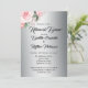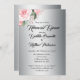 Notre invitation, 'Shabby-Chic Rose Roses on Silver Mariage Rehearsal' est une invitation à la répétition mariage avec une ambiance moderne et contemporaine. De style classique, il est décoré d'un beau bouquet rose en haut à gauche avec un dégradé métallique en dessous. Le dos de la carte a également la même base argentée, avec une version plus grande du même bouquet de rose au centre.