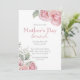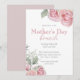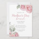 Cette élégante invitation personnalisée présente un thème floral de Brunch de la Fête des Mères. Les roses roses roses et la respiration du bébé de style aquarelle accentuent les coins supérieur droit et inférieur gauche.