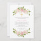 Ces belles invitations Baptême ou Christening tendance présentent de beaux roses d'aquarelle rose vif dans des sprays avec beaucoup de feuilles verts. Une fausse croix d'or se trouve en haut, et le fond de l'invitation est une couleur rose assortie.
