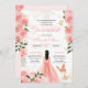 Quinceanera invitation pour une belle célébration à thème papillon. Avec d'élégants accents rose et or, une belle robe, papillons et texte. Si vous choisissez "customiser plus loin", vous pouvez modifier les couleurs et déplacer les papillons autour. Consultez la boutique pour cette invitation avec des filles dans différentes couleurs de cheveux et de teintes de peau et combinaisons de couleurs de ce design pour correspondre à votre événement ainsi que plus d'accessoires pour rassembler votre journée.