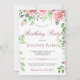 Soirée d'anniversaire rustique et élégante invitation féminine avec des roses de pivoines peints à la main rose et rouge bordeaux avec des feuilles verts et du feuillage et avec une tendance chic à la main lettrée script de calligraphie modifiable. ++++++++++++++ Convient pour un printemps, un jardin d'été ou un automne / jardin extérieur / anniversaire fleuri vintage / fête de fête.