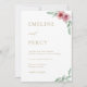 Cette faire-part de mariage présente des roses roses vertes et des feuilles verdoyants, dressés contre un arrière - plan blanc immaculé créant une toile d'une simplicité époustouflante et d'une élégance intemporelle. La carte RSVP correspondante est disponible à l'adresse suivante : https://www.zazzle.com/pink_roses_greenery_floral_wedding_rsvp_invitation-256982809820511285 La carte Detail Encape correspondante est disponible à l'adresse suivante : https://www.zazzle.com/elegant_greenery_wedding_hotel_detail_enclosure_invitation-256813768740115900