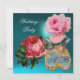 INVITATION ROSES ROSES, RUBAN CUPIDON CŒUR BLEU MONOGRAMME D