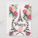 Des images anciennes de la Tour Eiffel, le mot Paris dans une typographie vintage dans une couronne de laurier et une fleur de lys avec du texte français provenant d'une publicité ancienne de Paris sont posés sur un lit de belles roses anciennes sur un fond rose doux. Une invitation très charmante, parfaite pour un anniversaire, une fête de fiançailles, une baby shower (ou une annonce de naissance), un mariage ou un autre événement. Le dos comporte certaines des belles roses anciennes et est prêt pour que vous puissiez le personnaliser avec vos propres informations. Un étui de téléphone, un classeur, un sac fourre-tout et de nombreux autres articles anciens de Paris assortis sont disponibles dans ma boutique Zazzle.