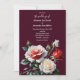 Elégant rouge foncé et rose blanche rose rose sur bordeaux foncé arrière - plan cottage coeur faire-part de mariage