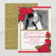 Invitation Roses rouges paillettes dorées Fête d'anniversaire