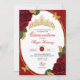 Roses rouges et Parties scintillant or Papillon Quinceañera Invitation