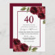 Invitation Roses rouges rubis romantiques 40e anniversaire de