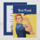 Rosie la riveteuse. Couleur arrière - plan et bannière personnalisée. Texte personnalisé des deux côtés.