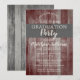 Conception de carton d'invitation de fête de remise de diplômes avec roue de chariot, bois de grange rustique et planche à clapet gris et toile de jute par Holiday Hearts Designs (tous droits réservés).