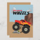 Cartons d'invitation de fête d'anniversaire de roues de monstre orange, jaune, rouge et vert.