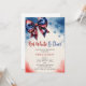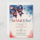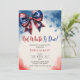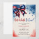 Cette conception présente un thème de baby shower pour le 4 juillet "Rouge blanc et attendu" avec un ruban à nœud inspiré du drapeau américain, un fond aquarelle bleu, blanc et rouge. Parfait pour les baby showers patriotiques neutres en genre. Personnalisez-le avec vos détails d'événement pour le rendre complètement vôtre !