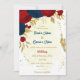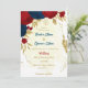 Invitation rouge & bleu marine fleurs or feuille mariage